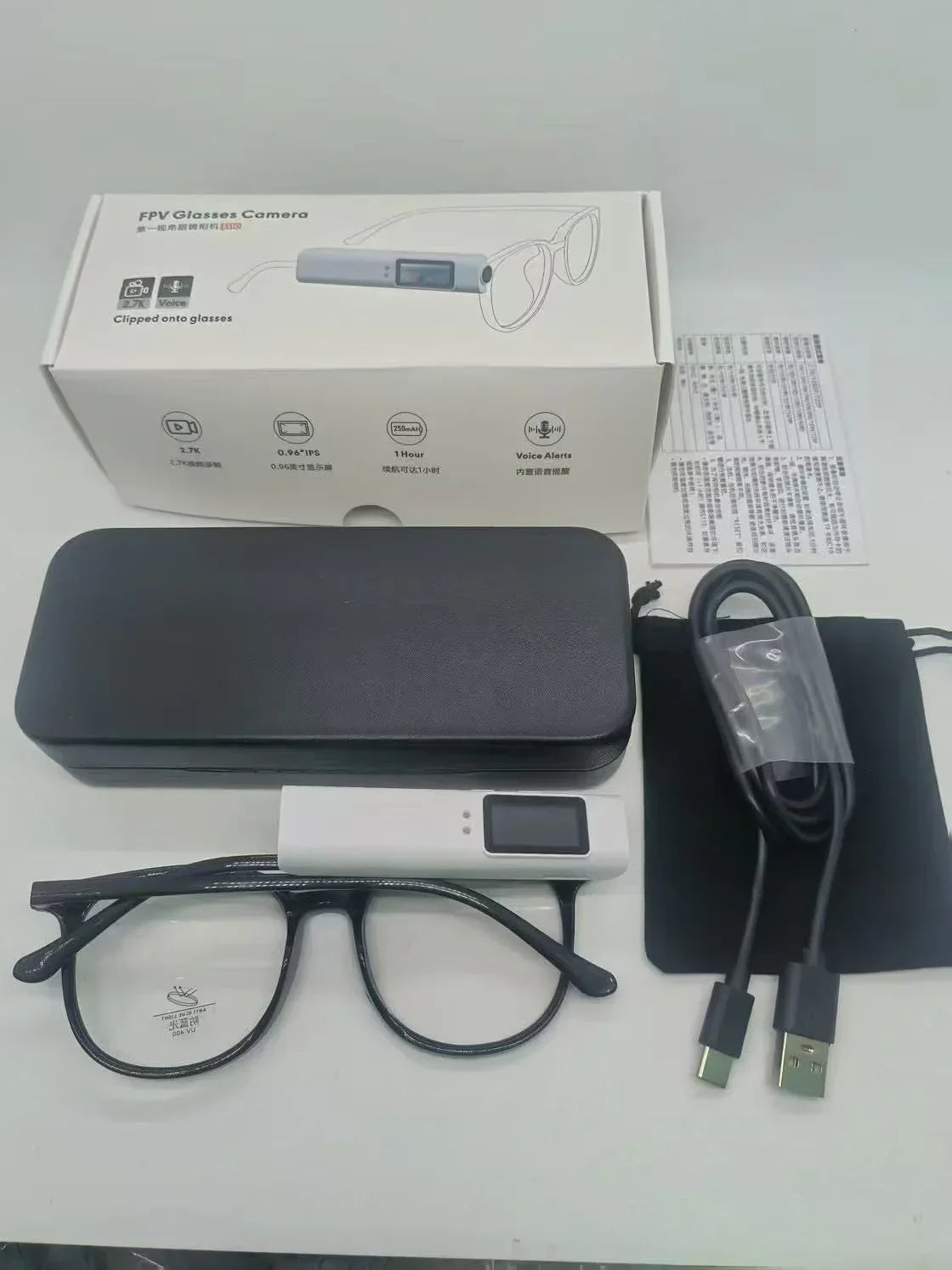 💼 Complete Kit – Includes glasses, camera module, cable, pouch, and case ✅